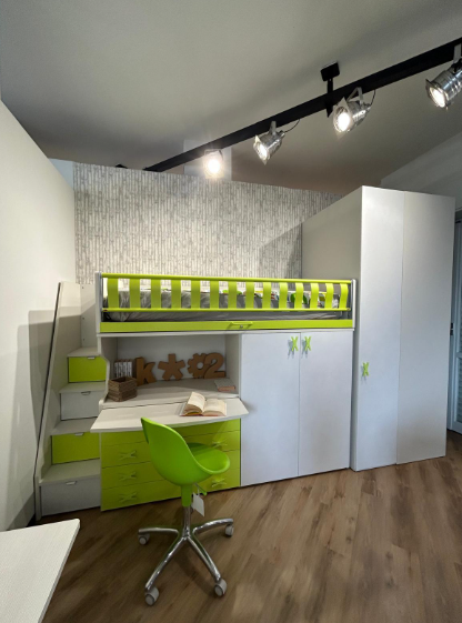 Cameretta a soppalco con cabina armadio e scrivania