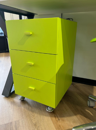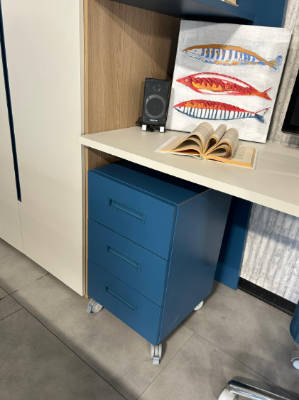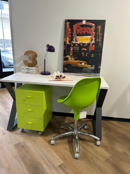 Angolo studio con scrivania, cassettiera e sedia