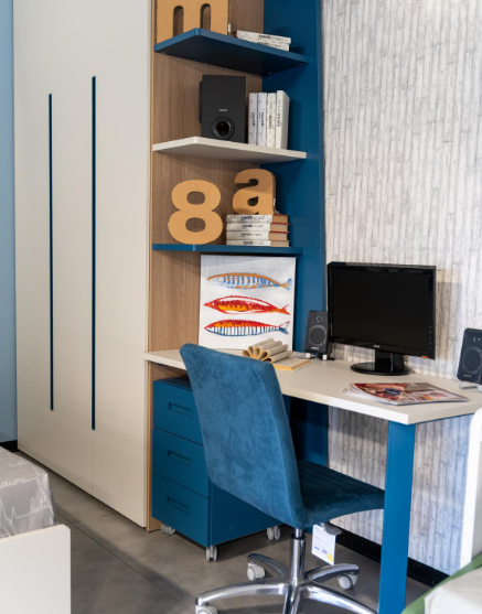 Angolo studio con scrivania e pensili
